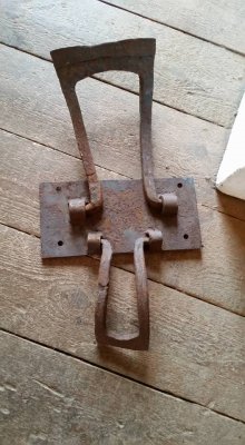 Olemme tutkineet kuvia mutta selkeää vastausta emme ole kyenneet muodostamaan. Kuvissa näkyvät terät muistuttavat hyvin paljon hakokirveen teriä, mutta miksi ne on kiinnitetty metallilevyyn, sitä emme pysty ratkaisemaan. Olen kirjoittanut pienen artikkelin hakokirveistä http://www.kansallismuseo.fi/fi/kansallismuseo/kokoelmat/kuukauden-esine-2006/hakokirves