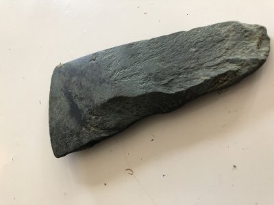 Kyseessä näyttää olevan teräosastaan hiottu kirves, joka ajoittuu kivikauteen. Maasta löydetyt, yli 100 vuotiaat esineet tulee ilmoittaa Museovirastolle. Se onnistuu kätevästi Museoviraston Ilppari-palvelun kautta. Muihin kivikautisiin esineisiin voit tutustua arkeologisten kokoelmien Finna-sivustolla.