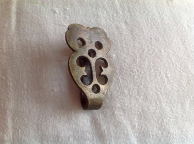 Onko tämä esine emännän vyöllä riippunut avainsolki? Esine on Pohjois-Savossa syntyneen isäni mukaan kulkenut suvussa eikä tiedetä sen tekijää eikä tekoajankohtaa. Käsityöltä vaikuttaa. Solki on painava, 52 grammaa, pituutta 6,5 cm. Ovatko tällaiset esineet tyypillisiä pohjoissavolaisia esineitä? Vai voisiko esine olla kulkeutunut Oulun seudulta, mistä isäni suku 1700-luvun alussa on tullut Savoon?