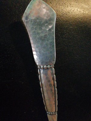 Kuvan perusteella vaikuttaisi siltä että soikeassa leimassa on kaksi tornia. Siinä tapauksessa kyseessä on tanskalainen esine, Tanskassa on käytetty kahden tornin soikeaa leimaa hopeoiduissa esineissä noin vuosina 1890-1930. Kauha (tai tarjoilulusikka) ei siis ole täyttä hopeaa vaan jotain muuta metallia joka on pinnoitettu ohuella hopeakerroksella.