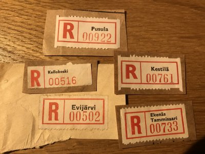 Nämä ovat kirjaamislipukkeita, jollaisia on käytetty kirjattujen postilähetysten merkintään. Kirjattu lähetys kuuluu niin sanottuihin arvolähetyksiin. Se on lisämaksullinen postilähetys, mistä lähettäjä saa kuitin ja joka luovutetaan tunnistetulle vastaanottajalle.