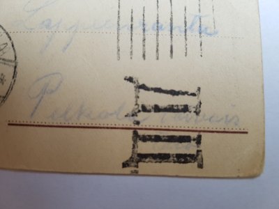Mikä on kuvassa näkyvä iso tumma leima kortin oikeassa alareunassa?
