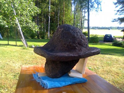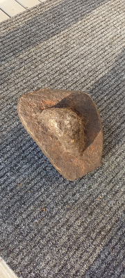 Hei ! Mikä kivi? Tämä löytyi Nivalan Malisjoesta kuivana kesänä 2018. Paikalla on ollut aikoinaan mylly ja saha. Kiven paino 10 kg, ei ole magneettinen.