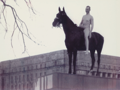 Luin jostakin, että Valokuvataiteen museon kokoelmissa on kuva alastomasta Mannerheimista hevosen selässä. Onko kuva aito? Mistä siinä on kyse?