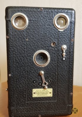 Tällaiset yksinkertaiset laatikkokamerat olivat 1910-luvulla jo melko yleisiä, ja niitä tulee varmasti vastaan myös keräilijöiden keskuudessa. Merkin ja mallin nimellä voit etsiä verkosta hinta-arvioita.