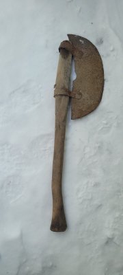 Mikähän tämän "kirveen" käyttötarkoitus on? Petsamosta mahdollisesti tuotu evakkokuormassa.