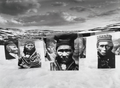 Yritän saada tietoa eräästä valokuvasta. Useita vuosia sitten esiintyi jossain lehdessä valokuva, ehkä johonkin näyttelyyn liittyen. Kuvassa näkyy tunturin rinteeseen, lumeen asetettuja isoja valokuva-affisseja saamelaisväestön kasvoista - vanhoja ja nuorempia. Teos on hyvin vaikuttava ja symbolinen ajallemme, mielestäni se kommentoi luonnon ja alkuperäiskansojen riistoa ja hyväksikäyttöä. En ole onnistunut selvittämään, mistä kuvasta on kyse. Osaisiko Suomen valokuvataiteen museo auttaa?
