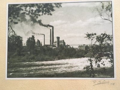 Kiitos kysymyksestäsi. Kuvassa näyttäisi olevan Ahlströmin paperitehdas Varkaudessa. Valokuvan on ottanut joku Jänisten valokuvaajasuvusta. Jänikset asuivat Varkaudessa vuodesta 1914. He kuvasivat kaupunkia miltei 100 vuoden ajan tallentaen sen muutosta hyvin monipuolisesti. Jäniksistä valokuvasivat isä Juho Jänis ja puoliso Siviä Jänis, sekä pojat Tuttu, Pauli ja Lauri Jänis, sekä myöhemmin näiden puolisot ja lapset.