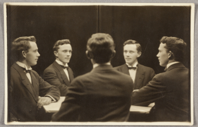 Hei, osaatteko sanoa miten oheinen kuva on toteutettu? Kuvassa on sama herra eri kuvakulmista, ja olettaisin että kuva on jotenkin yhdistetty useammista kuvista. Tietojeni mukaan kuva on 1920-luvulta.