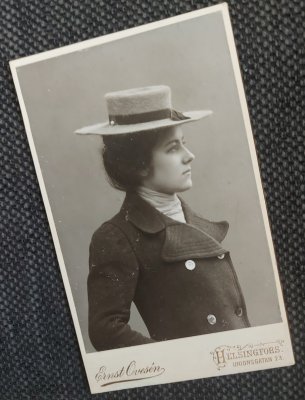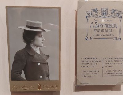 Hei Etsin-näyttelyssä on sama käyntikortti eli valokuva, mikä minulla on isoisäni peruja. Onko teillä tieto kuka on nainen kuvassa?